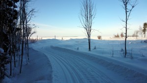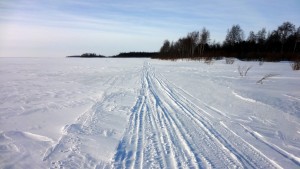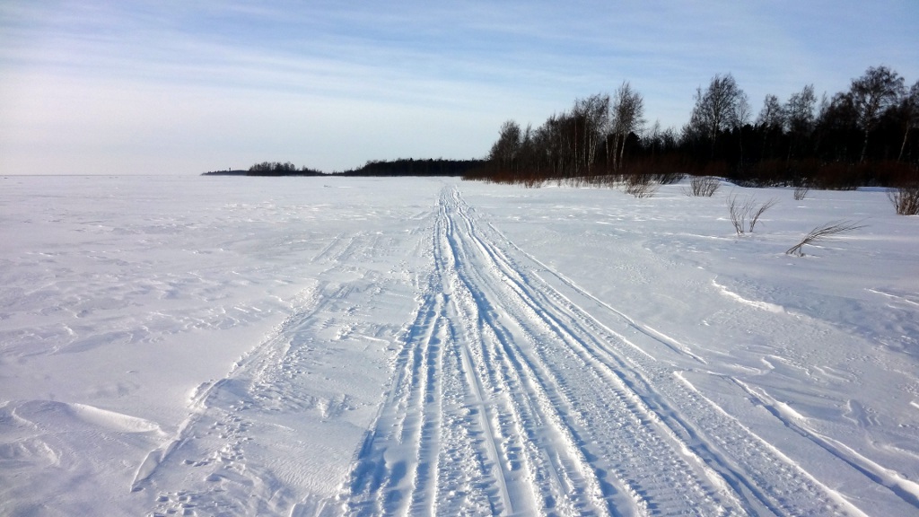 Umpihangessa eteneminen osoittautui mahdottomaksi, joten äkkiä takaisin jään päälle, mistä löytyikin hyvä moottorikelkkaura, jota pitkin lähdin etenemään.