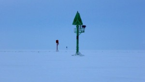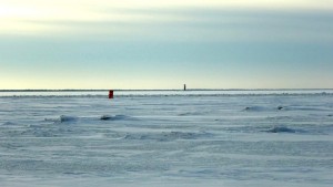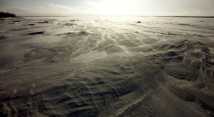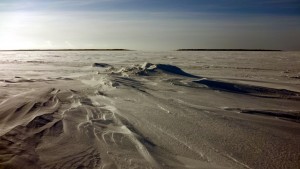 Tuuli oli jo tässä vaiheessa kova – 10 m/s – ja se kuljetti lunta jäätä pitkin.