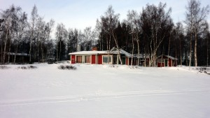 Mökistä tuli vielä toinenkin koira, ja ne lähtivät juoksemaan minua vastaan. Ne kuitenkin heiluttivat häntiään sen näköisesti, että arvelin kyseessä olevan enemmän uteliaisuuden kuin aggressiivisuuden. Tervehdin varovasti isäntää ja pyysin anteeksi, että tulen häiritsemään, mutta jäällä oleva vesi pakotti tälle reitille. Isäntä vastasi, että en häiritse ollenkaan, ja yllätyksekseni hän jatkoi, että jos tulen sisälle, niin hän keittää kahvit. Sekunnin miettimisen jälkeen vastasin, että ”sait ylipuhutuksi”, ja niin pääsin lämpimään mökkiin istumaan, juomaan kahvia ja kuulemaan kiinnostavia tarinoita mökin rakentamisesta ja elämästä saaressa yleensäkin. Kiitos vain vieraanvaraisuudestasi, Matti!