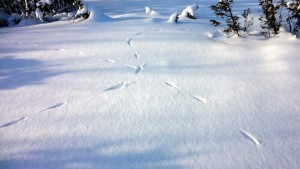 Joku pikkuotus oli kirmannut lumella ristiin rastiin. Minä sotkin nämä jäljet, kun yritin edetä vähän matkaa umpihangessa.