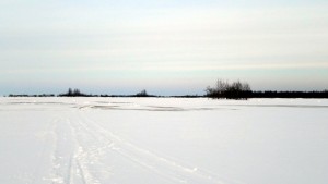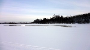 Yhdessä kohdassa minun oli pakko koukata erään mökin pihan kautta, kun jäälle noussut vesi esti kulkemisen jäätä pitkin. En voinut enää vaihtaa reittiä ulommas, koska olisin joutunut palaamaan takaisin monta sataa metriä löytääkseni kuivan välin, josta olisin voinut siirtyä ulommalle reitille. Olin nähnyt hetkeä aikaisemmin, että joku tuli tuolle mökille moottorikelkalla, ja kun pihassa alkoi koira haukkua, rupesi mietityttämään, että saanko kohta vihaisen koiran kimppuuni ja perässä tulee isäntä haulikko kädessä.