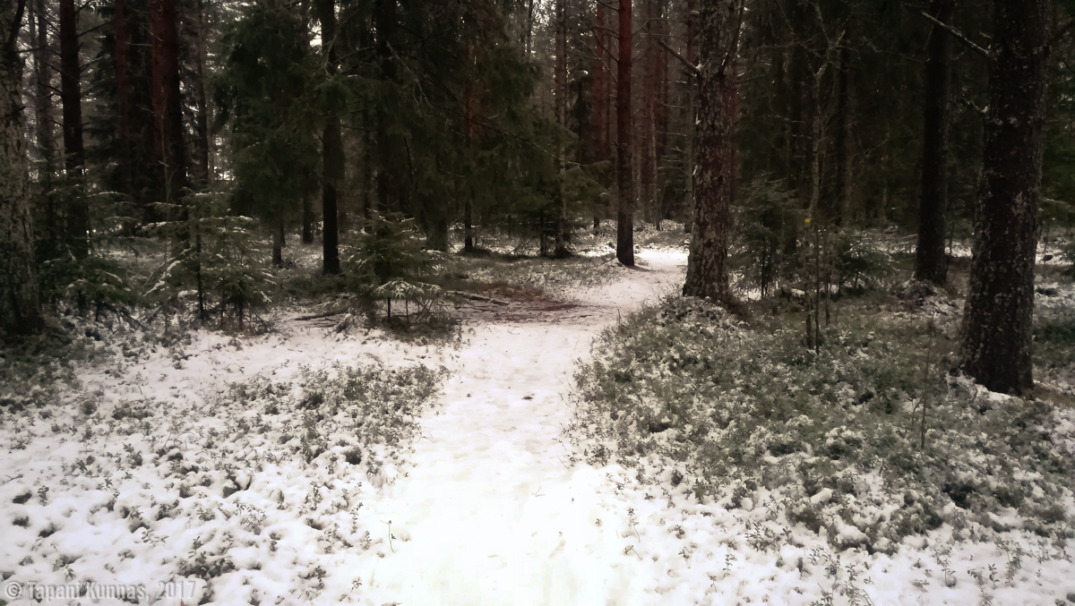 Marraskuinen lauantaiaamu on hieno. On vielä pimeää, lumiaurat kolistelevat siellä täällä eikä muita kulkijoita juuri näy. Ajatus edessä olevista (kymmenistä) kilometreistä kohentaa mielialaa entisestäänkin. Sää on marraskuun loppupuolen päivälle tyypillinen: pilvistä, lämpötila +1°C, heikkoa tuulta. Päivän aikana on odotettavissa ajoittaista lumisadetta.