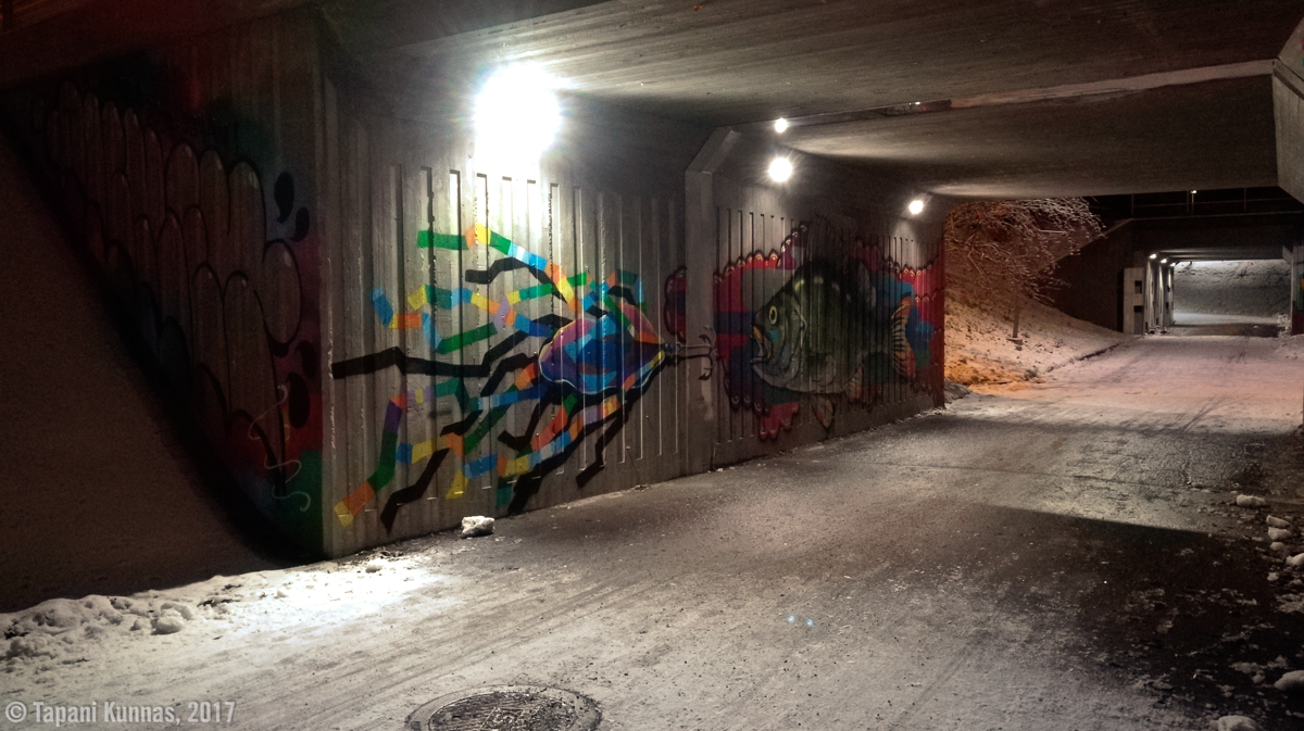 Tämä oli kivaa! Jatkan matkaani jo pimenneessä illassa. Taivaalta satelee hiljalleen lunta. Kulkemani lähes neljäkymmentä kilometriä tuntuvat jo väsymyksenä jaloissa, mutta mihinkään ei satu. Olen saavuttamassa olotilan, jota näillä pitkillä kävelyilläni tavoittelen. Ympärilleni alkaa muodostua kupla, jossa olen vain minä, minun askeleeni ja edessä näkyvät muutamat metrit tietä.