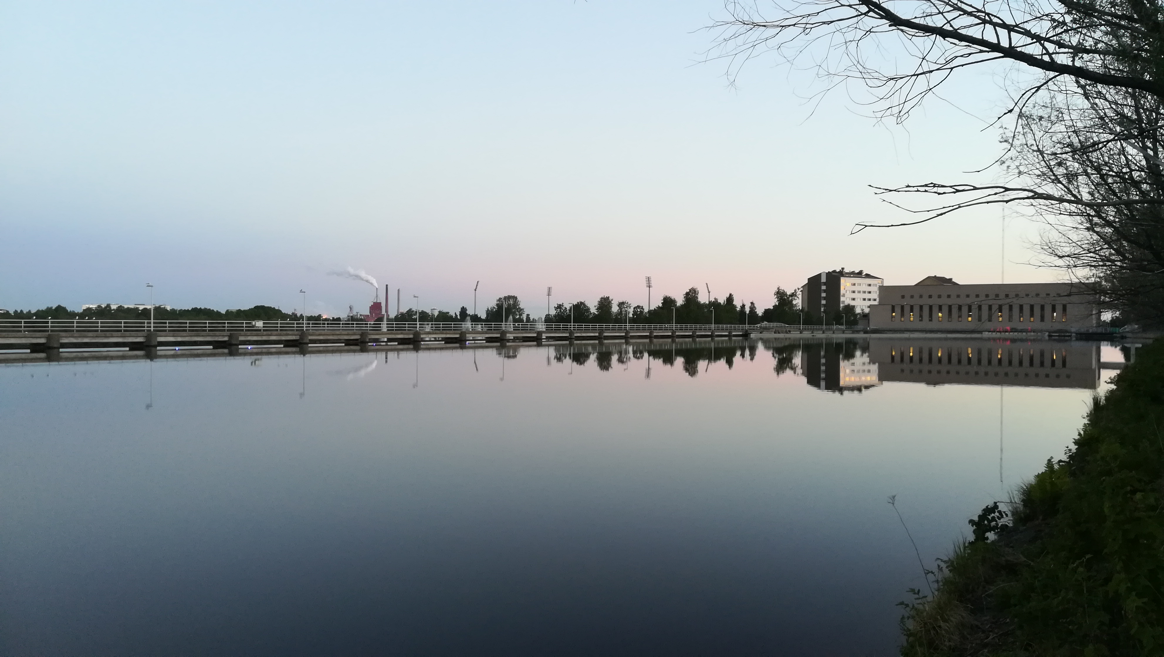 Nämä kuvat otin kesäkuun 1. ja 2. päivän välisenä yönä hieman puolenyön jälkeen Merikosken voimalaitoksen yläkanavalta.