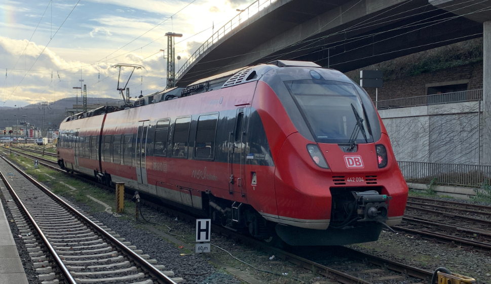 Koblenzissa vaihdetaan ICE:stä paikallisjunaan. Junan lähtöä seuraa hetken hämmennys, kun lähdetäänkin takaisin tulosuuntaan. Karttaa katsomalla selviää syy: rata Koblenzista Luxemburgiin haarautuu äsken kulkemastamme radasta Koblenzin pohjoispuolella. Jyrkkä kaarros vasempaan vie meidät taas odotusten mukaiseen kulkusuuntaan ja hetkeä myöhemmin ylitetään joki. Se on Mosel – Koblenz on paitsi rautateiden, myös jokien risteyspaikka: Mosel päättyy tässä ja vesi jatkaa matkaansa Reinin uomassa.