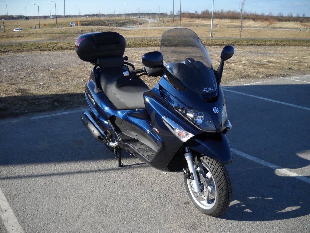 Potkulautailublogissani kerroin alkuun moposkootterilla ja myöhemmin Vespalla tekemistäni matkoista. Toukokuussa 2010 oli aika siirtyä taas isompaan leluun: Vespa vaihtui ”oikeaan” maxiskootteriin eli Piaggio Xevo 400:aan. 7.5.2010 Vespa jäi Hirvosen pihaan ja matka jatkui Piaggiolla.