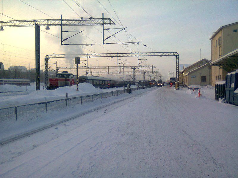 Pitkästä aikaa tuli harrastettua junakuvausta Oulussa, ja vieläpä extreme-sellaista: 30 asteen pakkasessa tarjoutui mahdollisuus ikuistaa 2,5 tuntia myöhässä saapunut P269, kun sen keulille vaihdettiin vikaantumisista matkan varrella kärsineen marsun tilalle asianmukainen Iso Vaalee.
