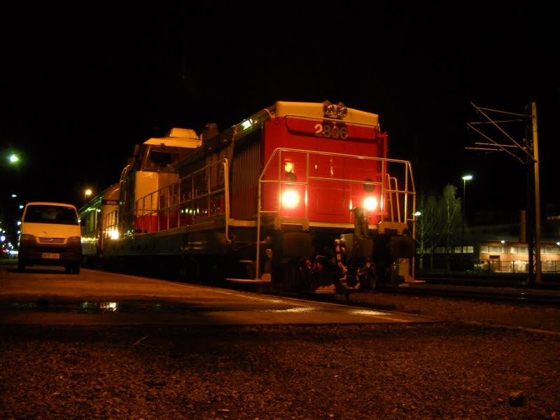 Yöjunaan lähtö edessä jälleen kerran, nyt ensimmäistä kertaa Routa-ajan aikataulujen mukaan. Sopivasti tulin asemalle ajoissa näkemään, kuinka vähän myöhään jäänyt P272 sapui Ison Vaaleen 2806 vetämänä Ouluun. Hetken aikaa luulin jo myöhästyneeni veturinvaihdosta, mutta jostain syystä Vaaleen irrotusta ei tehty heti, vaan vasta sitten, kun olin jo kameroineni laiturin päässä. Kilttiä.