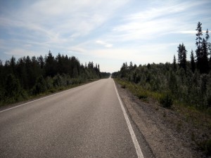 Pitkä suora tie. Onneksi on sentään mäkiä. Nykyään ei teitä enää vedettäisi viivasuoraan, vaan muodissa on linjaus, joka kaartaa joka kohdassa johonkin suuntaan. Pitää kuljettajan virkeänä ja vähentää nukahtamisriskiä, muistelen jostain lukeneeni.