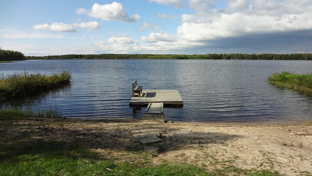 Vatsa täynnä kauppahallista ostettua kalakukkoa jatkoin matkaa – en mennyt varsinaiseen Onkamon kylään, vaan jatkoin matkaani Onkamonjärven eteläpuolitse kohti itää. Järven rannalla oli pieni uimapaikka laitureineen, lentopallokenttineen ja nuotiopaikkoineen. Tuonne voisi joskus ottaa vaikka makkaraa mukaan, ja istahtaa nuotion ääreen jokuseksi toviksi.