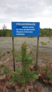 Juuri ennen isolle tielle saapumista on tämän Rajakankaantien vasemmalla puolella rivi hiekkakuoppia, joiden äärellä kielletään pohjavettä likaava toiminta. Alun perin tuossa on kielletty myös uiminen, mutta sen on joku nähnyt hyväksi sensuroida pois. Arvelin, että kahvin juomisesta ei ole pohjavedelle haittaa, ja pidin retken viimeisen tauon tuossa.