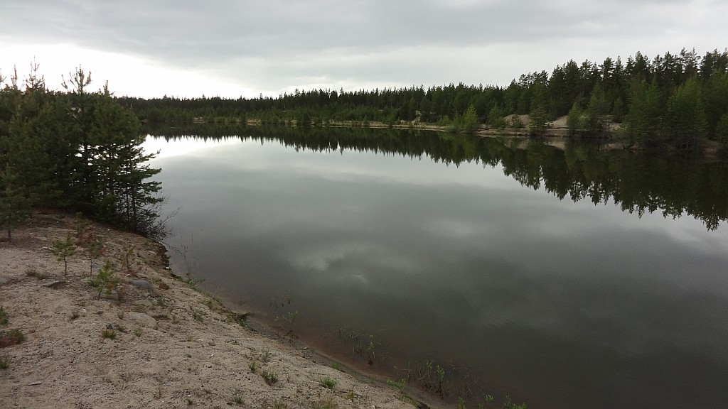 Hiekkakuoppiin syntyneissä lammissa taitaa olla myös jonkinsorttisia kaloja, ainakin siihen malliin tuo tyyni pinta silloin tällöin rikkoutui – jokin sitä pintaa kävi alhaalta päin nokkaisemassa.