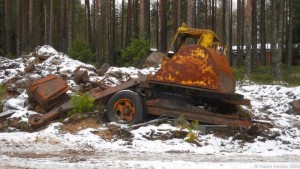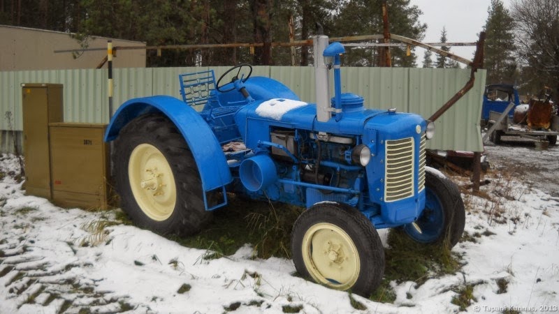 Toinen erityinen ihmettelyn aihe on vanhojen koneiden suuri määrä reittini varrella: Honkimaan teollisuusalueella yhden korjaamolta näyttävän rakennuksen portinpielissä on kaksi vanhaa Zetoria – toinen vihreä 25 k -malli ja toinen sininen, jonka tarkkaa mallia en tunnista. Myös Taunus Transit -pakettiauto löytyy, pikasilmäyksellä se vaikuttaa olevan ehkä vielä pelastettavassa kunnossa. Vähän myöhemmin bongaan tien oikealta puolelta vanhan Pikku-Jussi -kaivinkoneen, ja vain muutaman sadan metrin päässä siitä tien vasemmalla puolella on samanlaisen koneen raato. Yhden talon pihassa on kaksi vanhaa traktoria, joista en ota kuvia, koska en kehtaa mennä aivan toisten pihaan kuvaamaan. Ja vielä matkan loppupuolella havaitsen pellolla vanhan nokkamallisen Volvo -kuorma-auton.