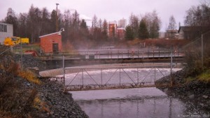 Kemiran tehdasalueelta tuleva vesioja.