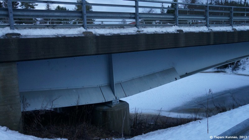 Sanginjoen siltapalkeissa on erikoiset pellitykset. Olisiko näiden tarkoitus estää hurjapäitä kiipeämästä siltapalkin laipalle pudottamaan itsensä jokeen.