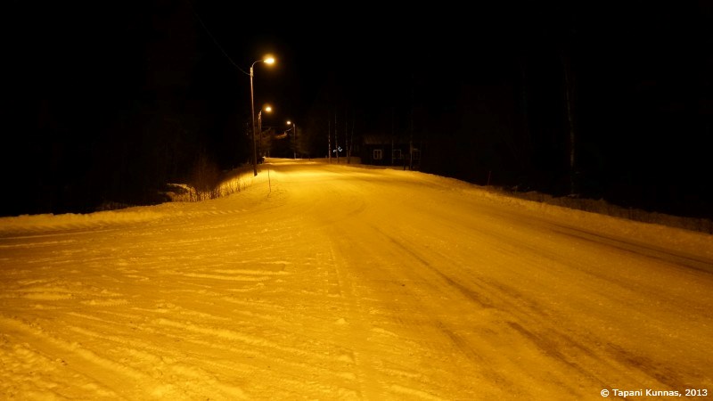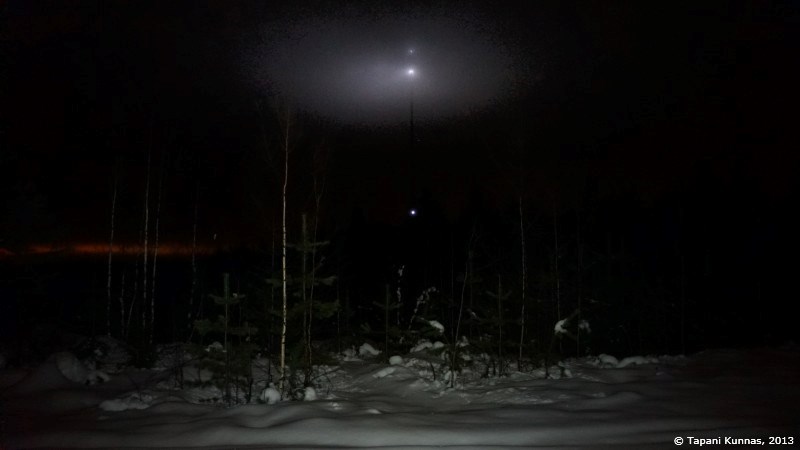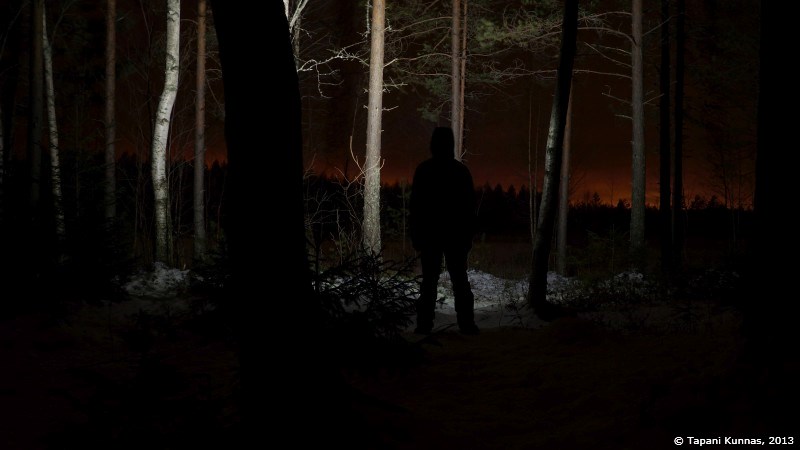 Pimeässä metsässä hämärään tottuneet silmät häikäistyvät tällaisesta natriumlamppujen loisteesta.