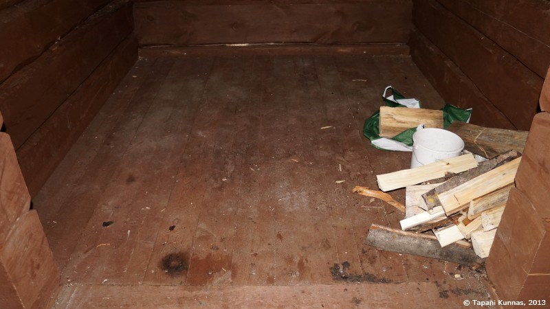 Myllykosken laavu on sisältä kuiva ja siisti. Hyvää retkeilijätapaa noudattava kulkija on jättänyt laavuun sisälle polttopuita – ovatpa kuivia seuraavalle tulijalle. Tällaisista tulee aina hyvälle mielelle.