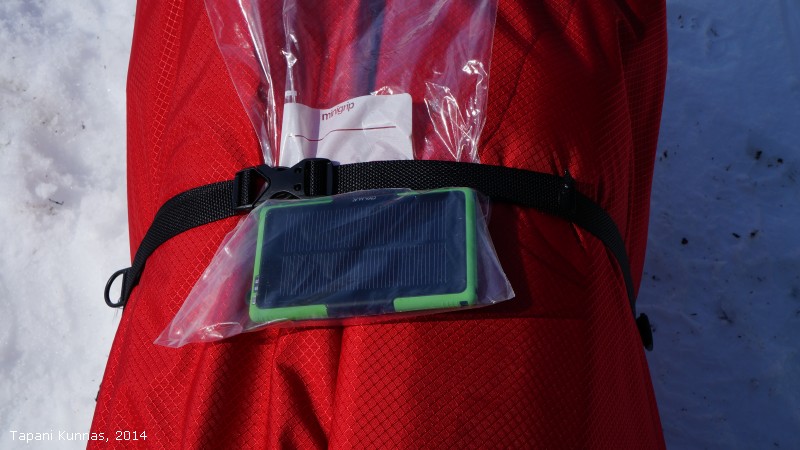 – aurinkokennolaturivirtapankki + laitteiden latauskaapelit