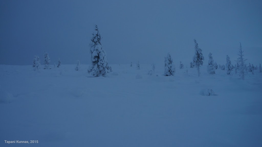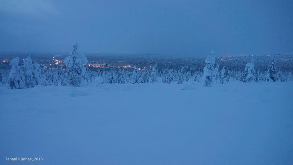 Paluumatkan alussa suunnistaminen oli helppoa: valitsi vain jonkin valopisteen alla näkyvästä tunturikylästä ja kulki sitä kohti.