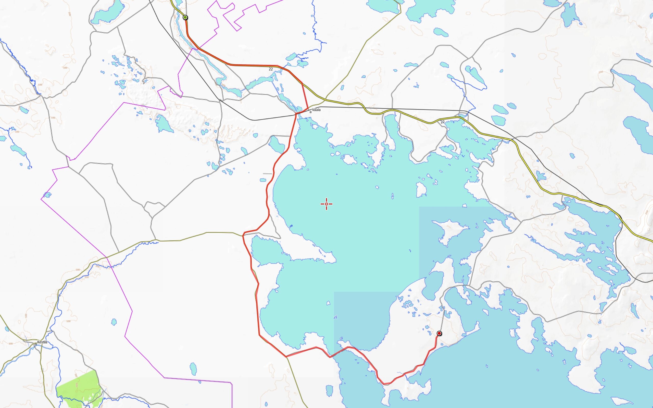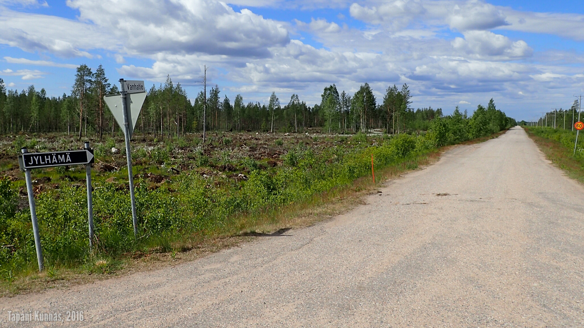 Aamu on tyyni, mutta myöhemmin päivällä tuuli herää ja kun käännyn pois valtatieltä 22 ennen Vaalaa, alkaa tuuli puhaltaa vastaisesti. Puolitoista kilometriä ennen Vaalaa luen risteyksestä oikealle lähtevän soratien nimikilven: ”Vanhatie”. Tämä tie kulkee Jylhämän ja Nuojuan voimalaitosten kautta ja yhtyy valtatiehen 22 Partalankylän pohjoispuolella. Tuossahan sen Tervan tien pitäisi kulkea eikä uudella valtatiellä!