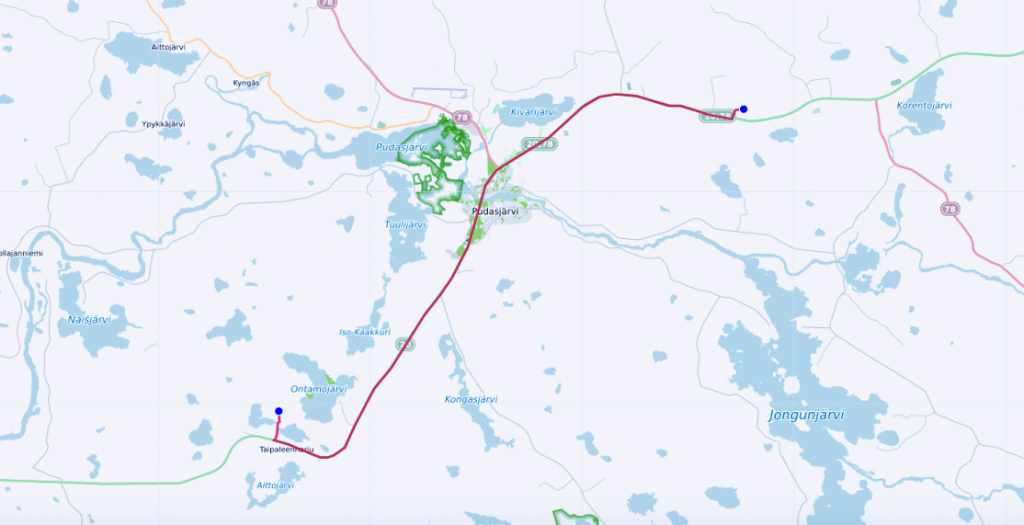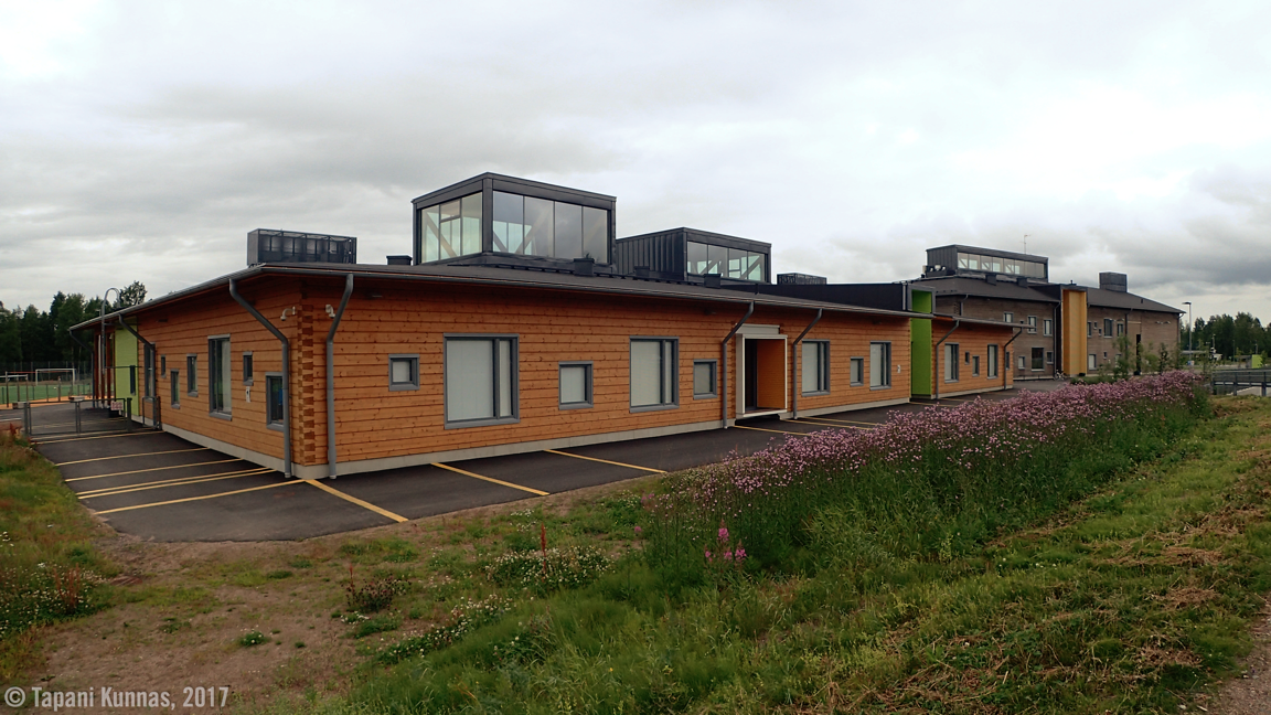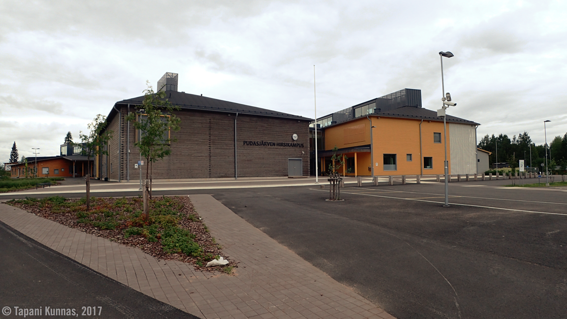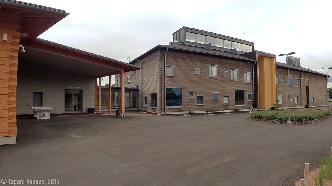 Vatsa ja vesipullot täynnä matka jatkuu. Ylitän Iijoen ja ohitan Pudasjärven kuuluisan Hirsikampuksen. Tässä elokuussa 2016 käyttöön otetussa maailman suurimmassa hirsikoulussa toimii sekä peruskoulu (1.-9. luokat) että lukio.