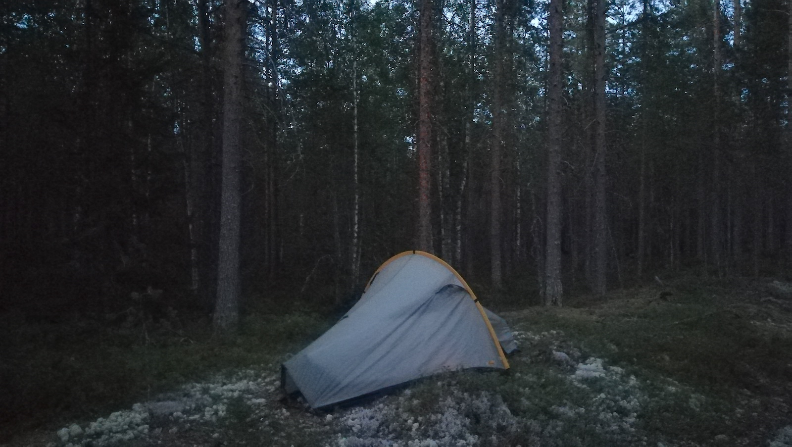 Eihän tällaisesta retkestä paljoa kerrottavaa ole. Vietän maastossa kuitenkin varsin lyhyen ajan, enkä tee illalla muuta kuin leiriytymiseen liittyvät hommat. Aamu ei ole sitä kummempi: teltasta poistuttuani laitan aamupalan, syön, puran leirin ja sitten lähden kotiin töihin.